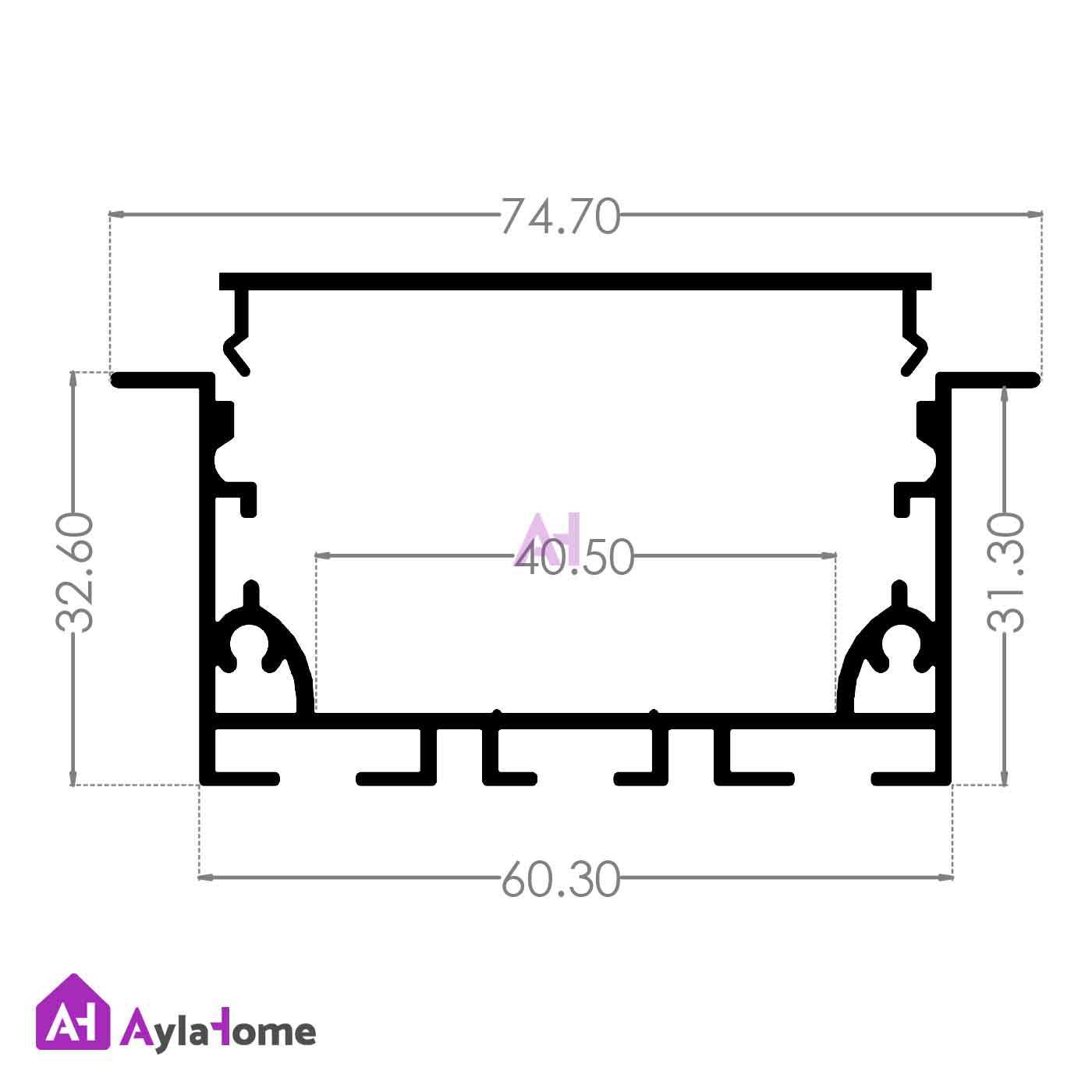 عرض پروفیل (با لبه): 74/70 میلی متر